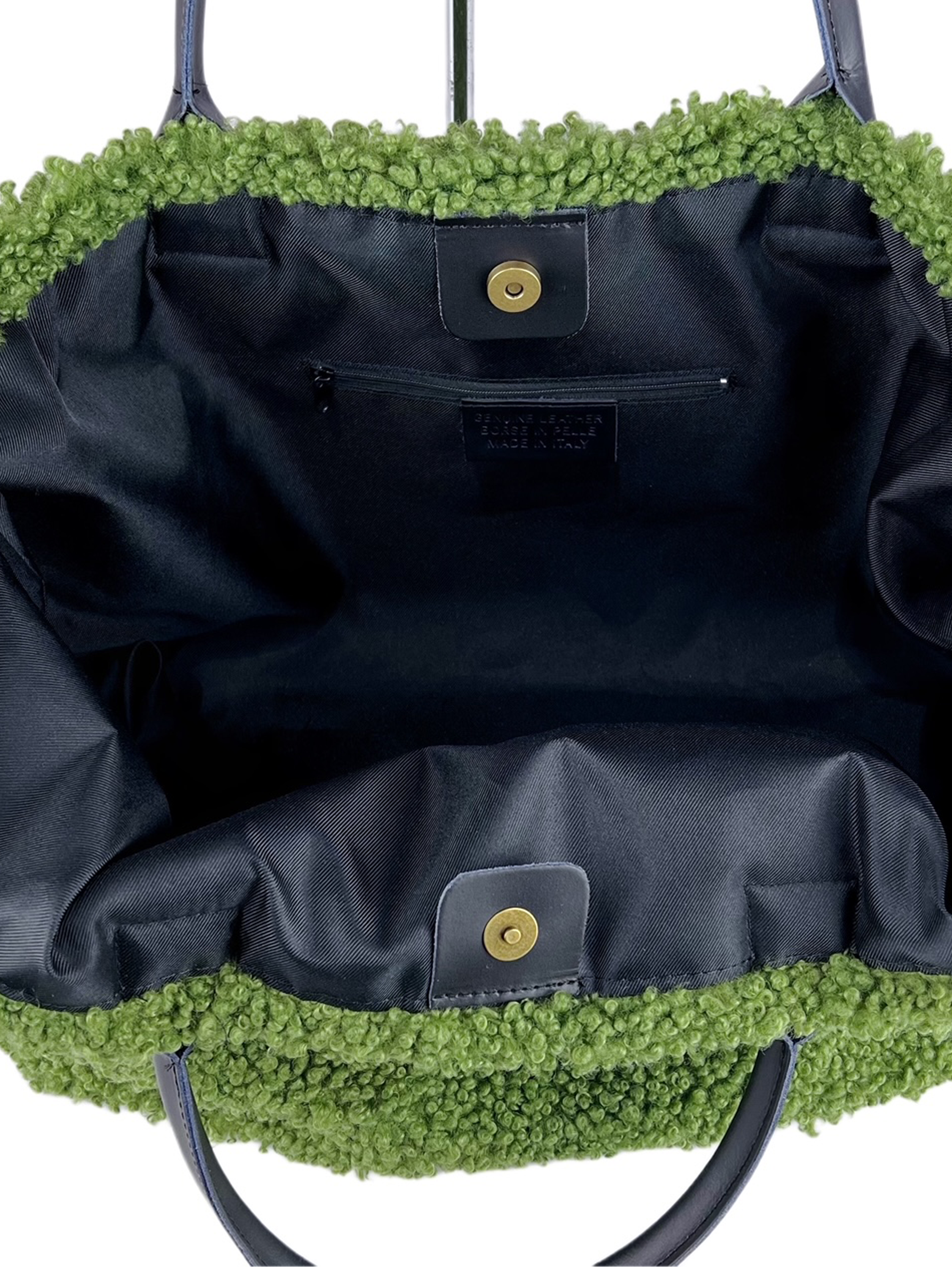 Torebka damska typu shopper bag wykonana jest z miękkiej takniny TEDDY.  To must have sezonu. Wnętrze to jedna, pojemna kieszeń, ktora pomieści wiele rzeczy. Torebka zapinana jest na magnes. Dostępna w kilku wariantach kolorystycznych do wyboru.