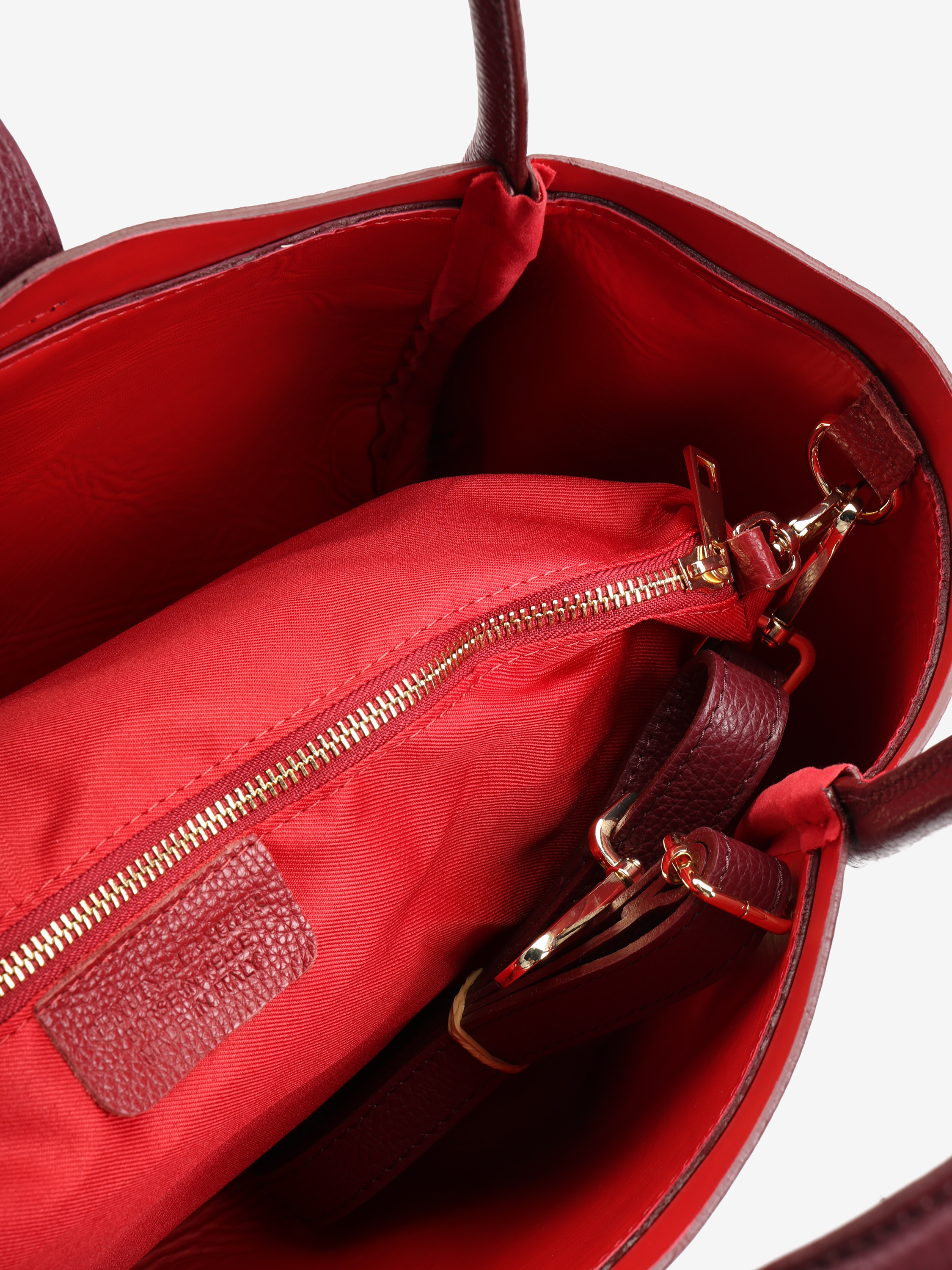 Elegancka torebka wykonana z wysokiej jakości skóry licowej. Wewnątrz znajduje się wyjmowana kosmetyczka, a dzięki łańcuszkowi można zmienić kształt torebki. Czerwone wnętrze dodaje jej wyjątkowego charakteru, a pojemność zapewnia komfort użytkowania na co dzień.