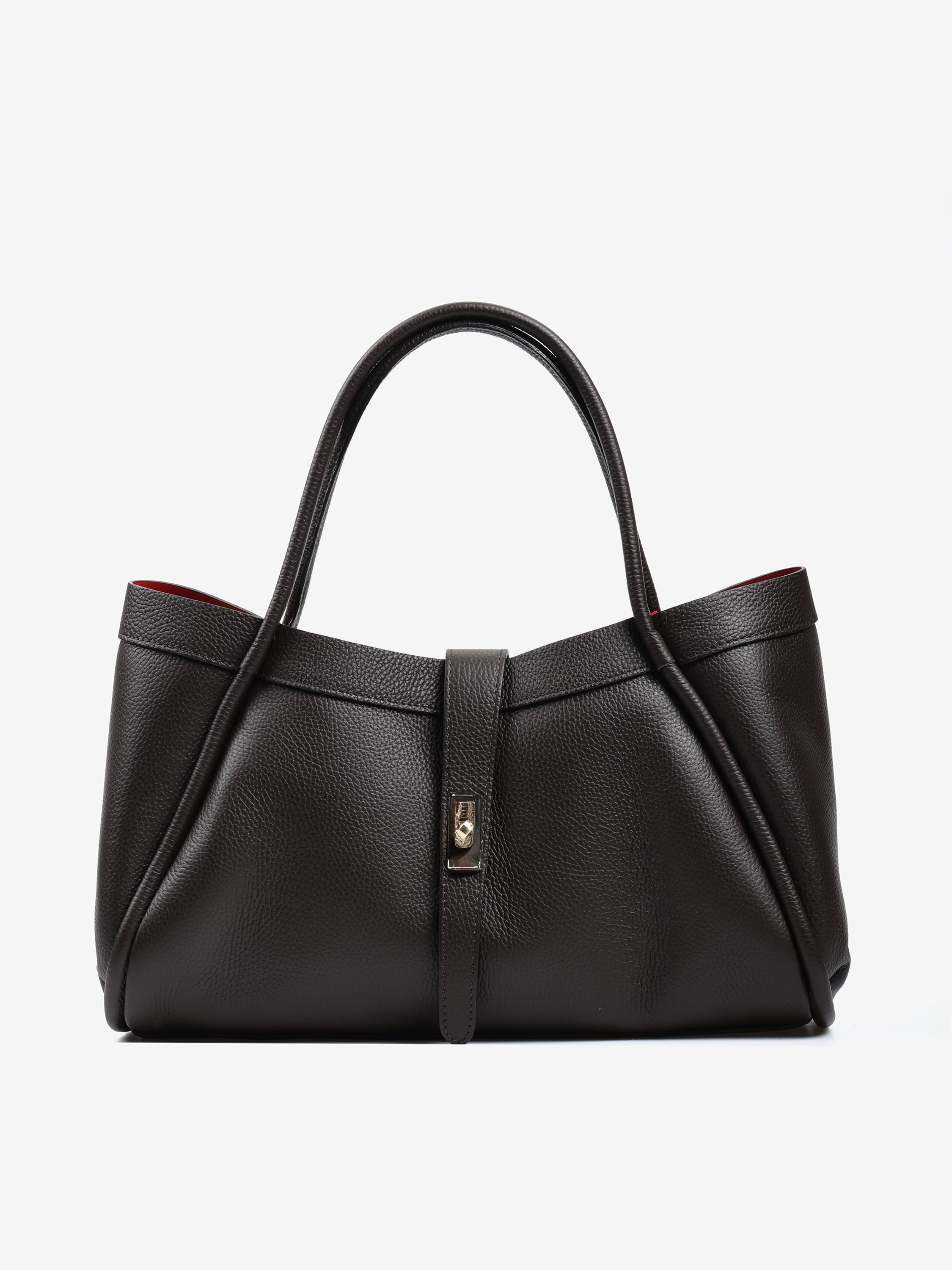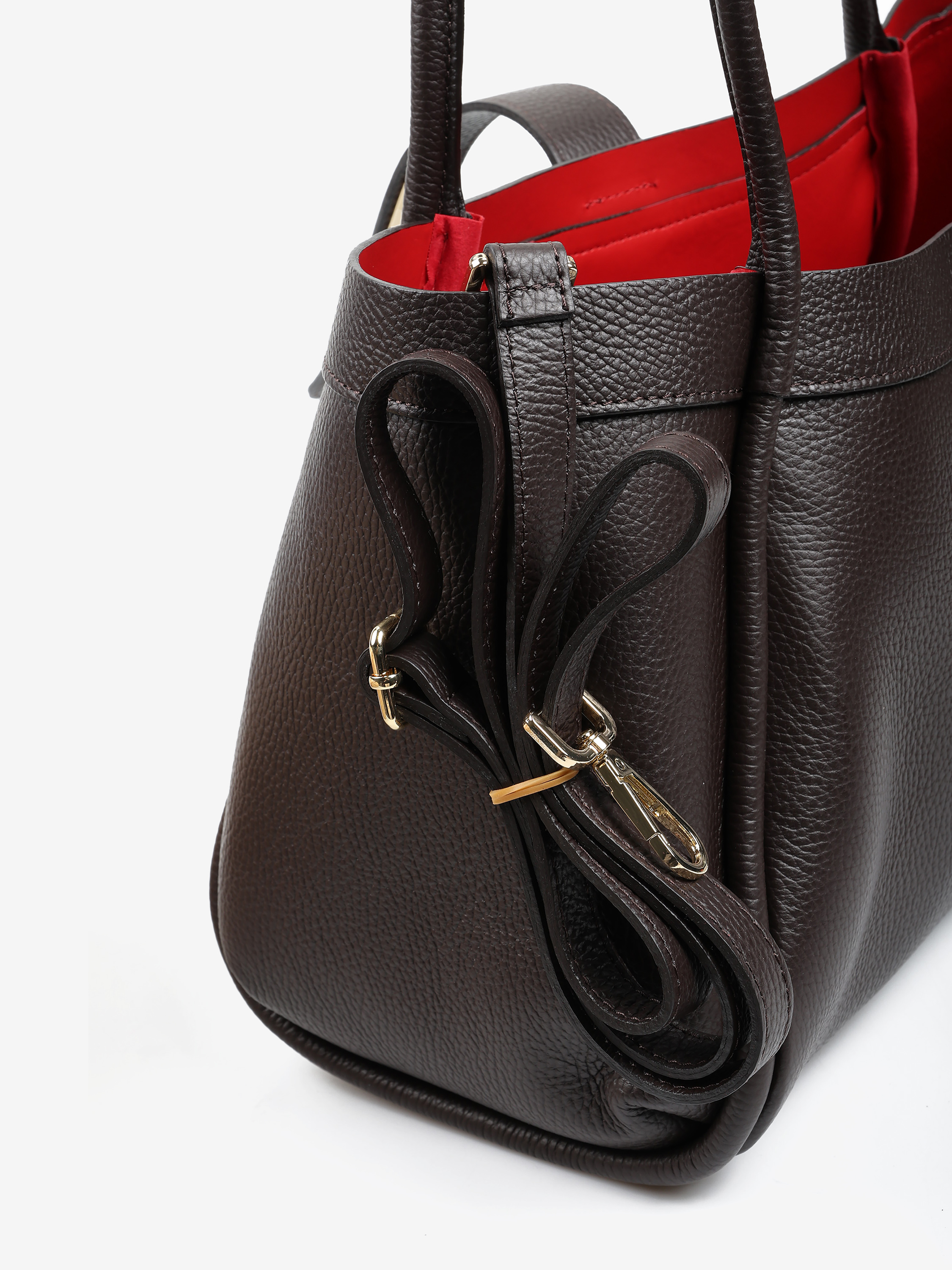 Elegancka torebka wykonana z wysokiej jakości skóry licowej. Wewnątrz znajduje się wyjmowana kosmetyczka, a dzięki łańcuszkowi można zmienić kształt torebki. Czerwone wnętrze dodaje jej wyjątkowego charakteru, a pojemność zapewnia komfort użytkowania na co dzień.