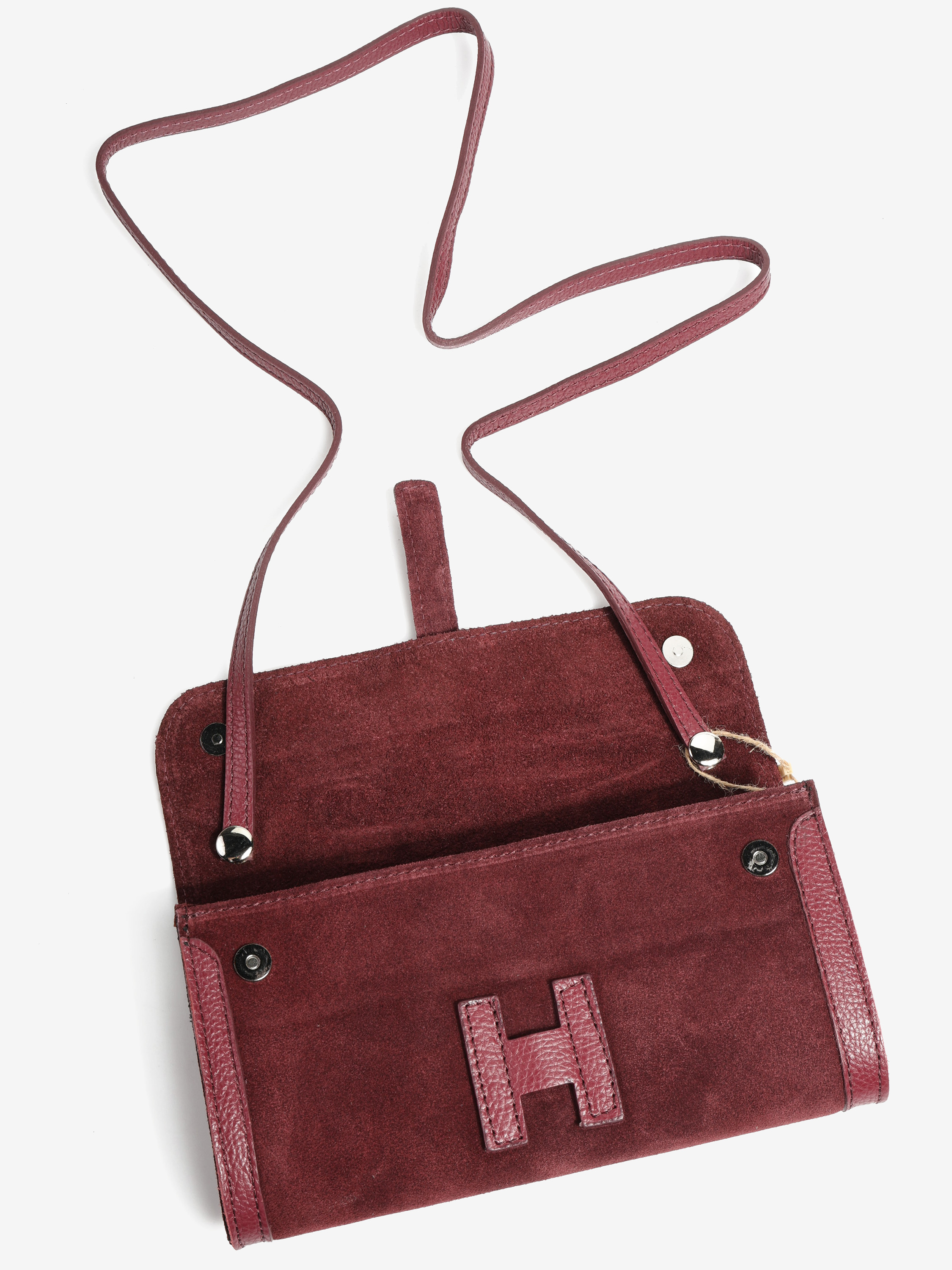 Kopertówka z ozdobnym zapięciem w kształcie litery H - jak HEGO'S MILANO. Dodatkowy pasek do noszenia na ramieniu.