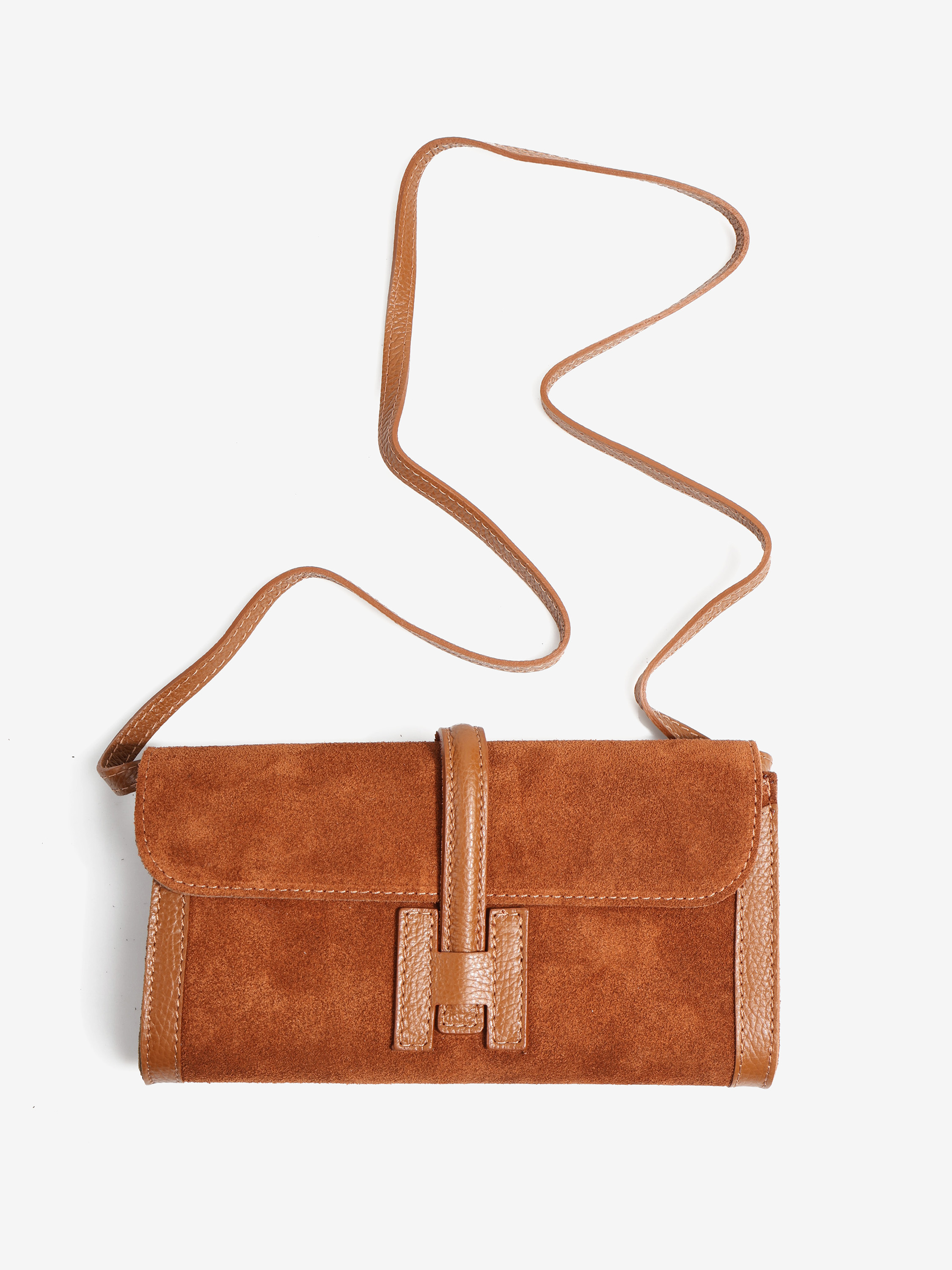 Kopertówka z ozdobnym zapięciem w kształcie litery H - jak HEGO'S MILANO. Dodatkowy pasek do noszenia na ramieniu.