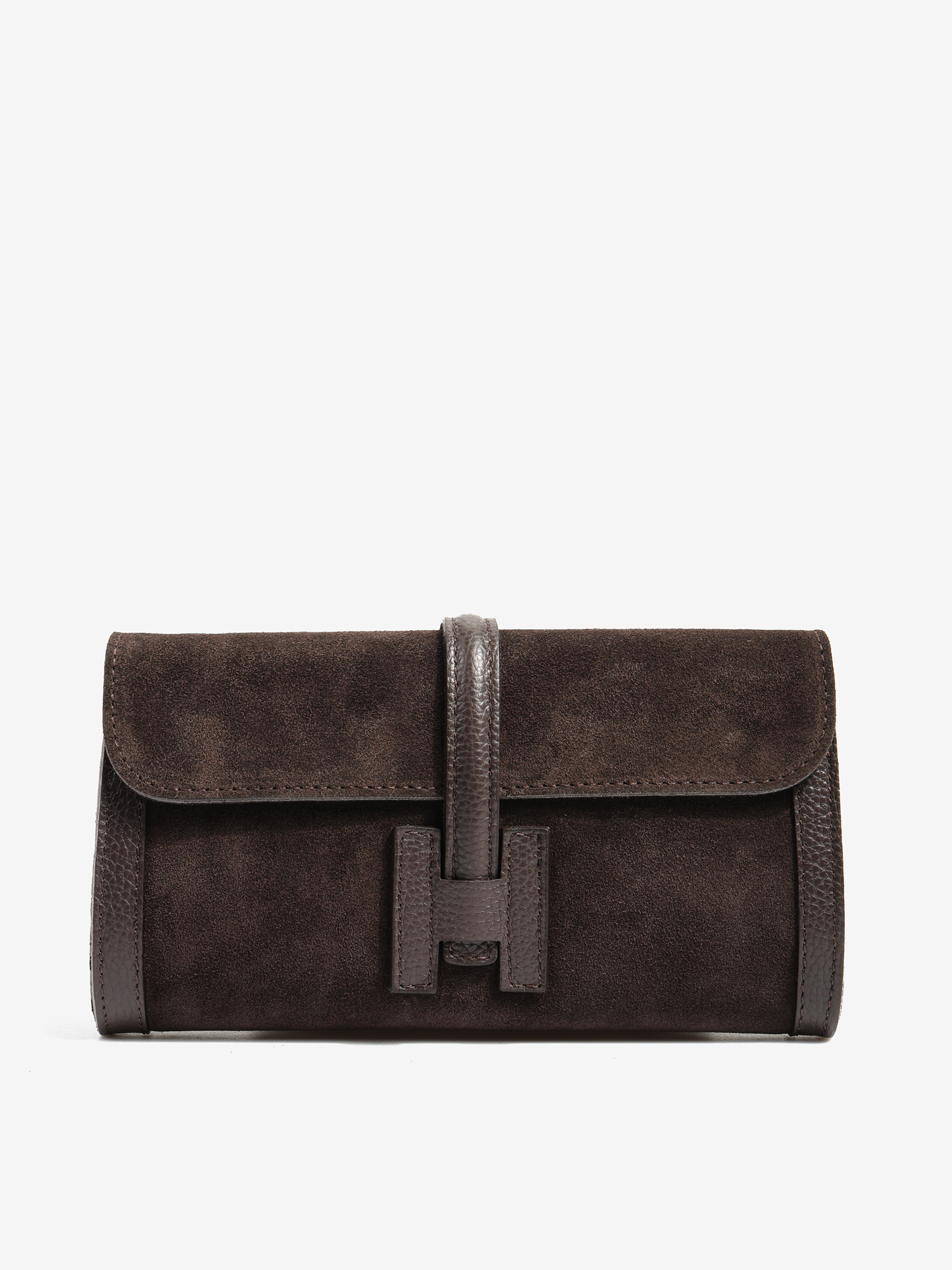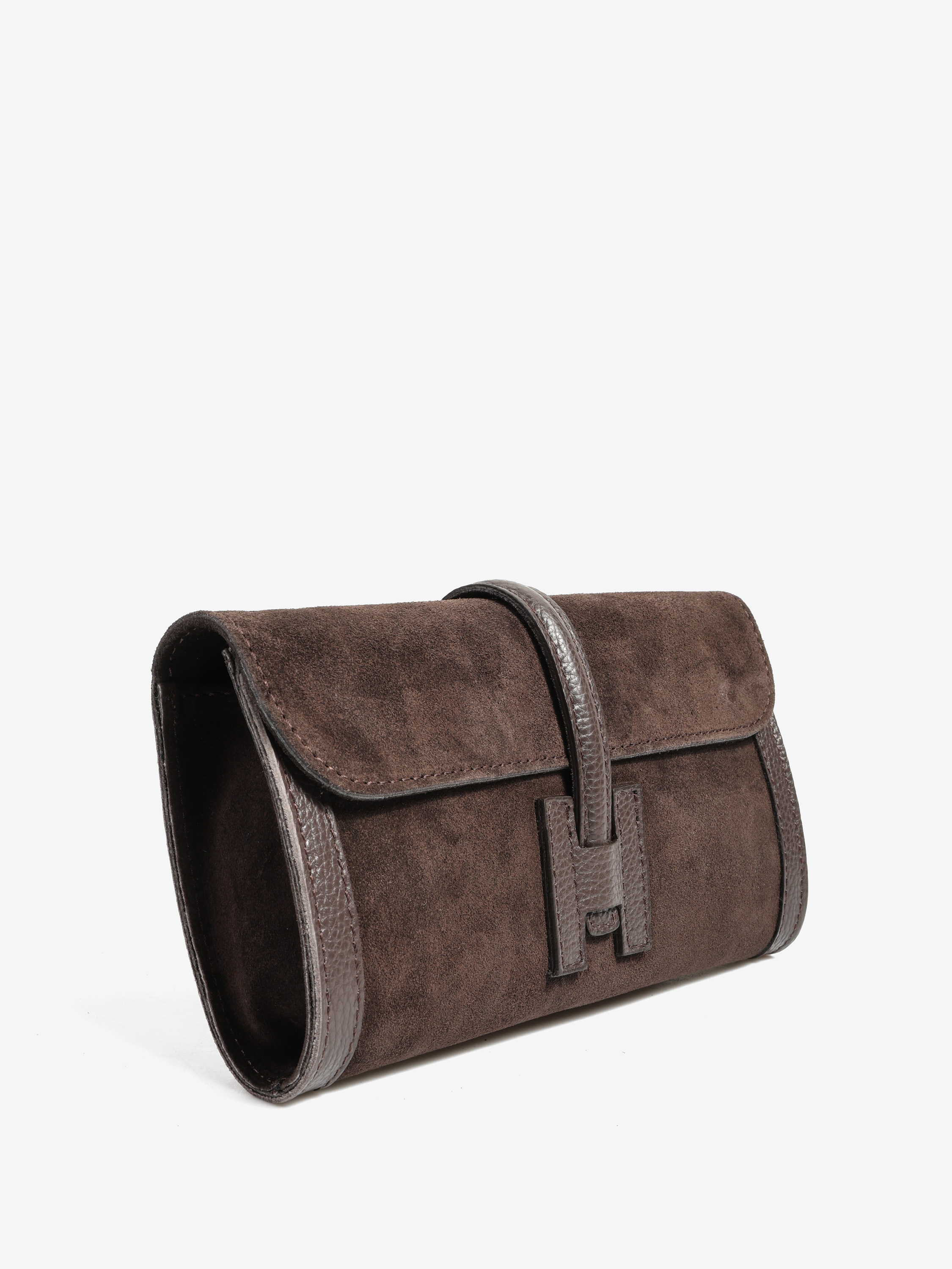 Kopertówka z ozdobnym zapięciem w kształcie litery H - jak HEGO'S MILANO. Dodatkowy pasek do noszenia na ramieniu.