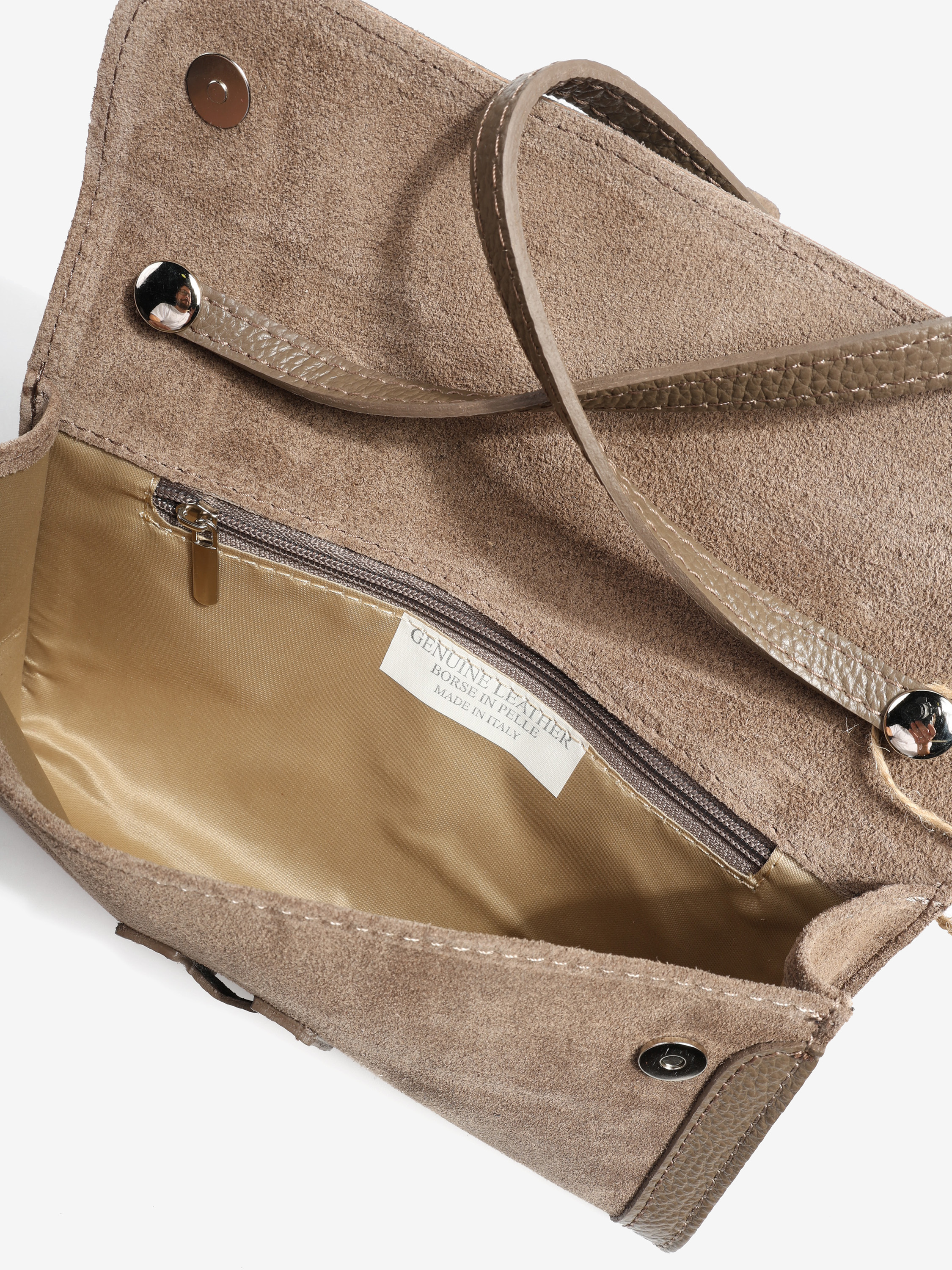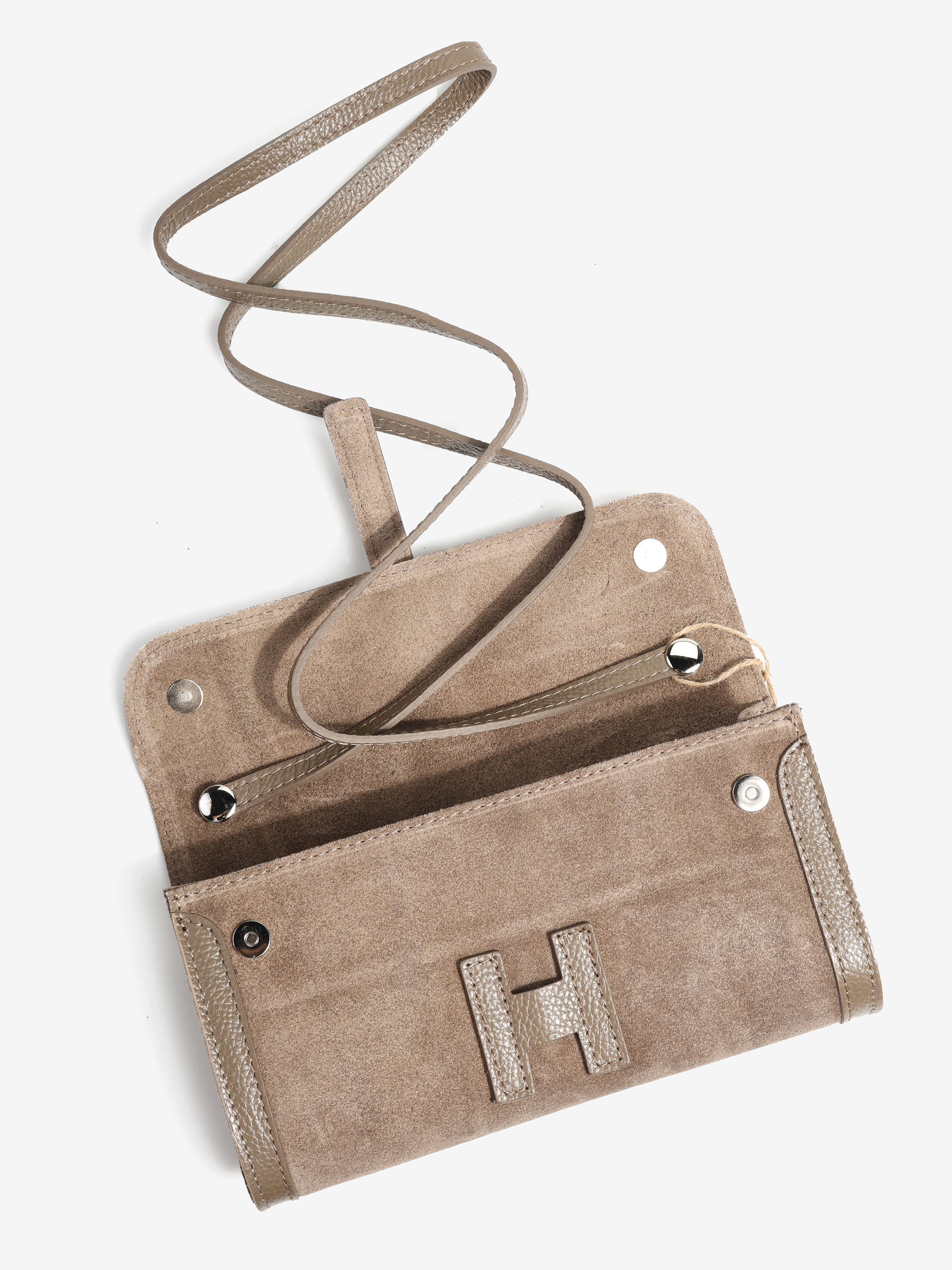 Kopertówka z ozdobnym zapięciem w kształcie litery H - jak HEGO'S MILANO. Dodatkowy pasek do noszenia na ramieniu.