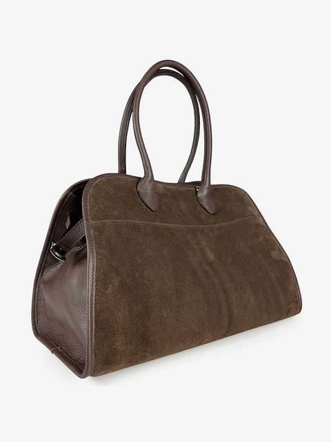 Model wykonany z naturalnej skóry zamszowej w połączeniu ze skórą licową. Wewnątrz mała kieszeń zapinana na suwak. Torba posiada dodatowy pasek.