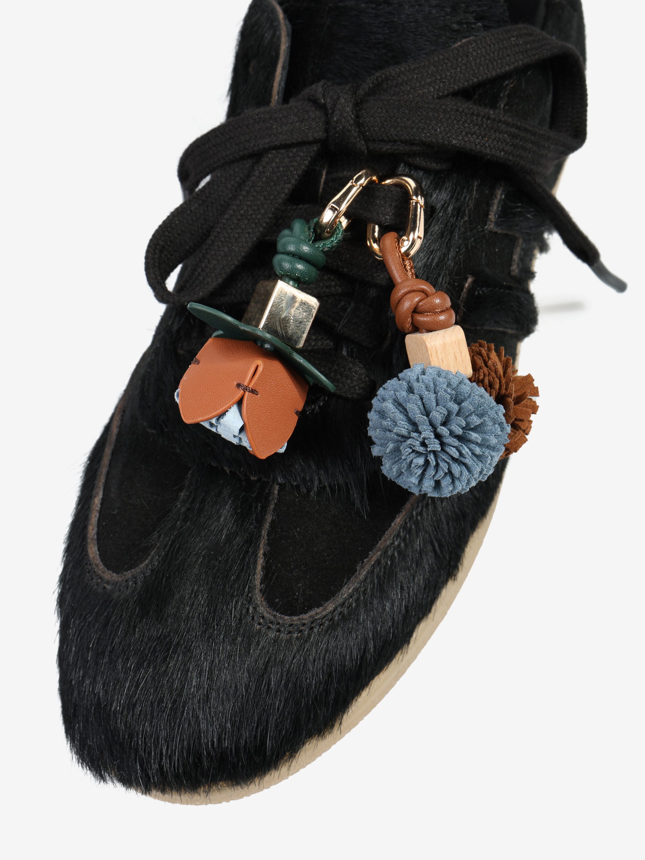 Stylowa przywieszka w formie breloka wykonana ze skóry i tkaniny,ozdobiona pomponami.To idealny dodatek dla osób ceniących sobie detale i oryginalne akcenty w codziennych stylizacjach. Sprawdzi się jako ozdoba do butów, kluczy, zamka w torebce, plecaka czy nawet telefonu. Niewielki detal, który wyróżni Cię z tłumu!
