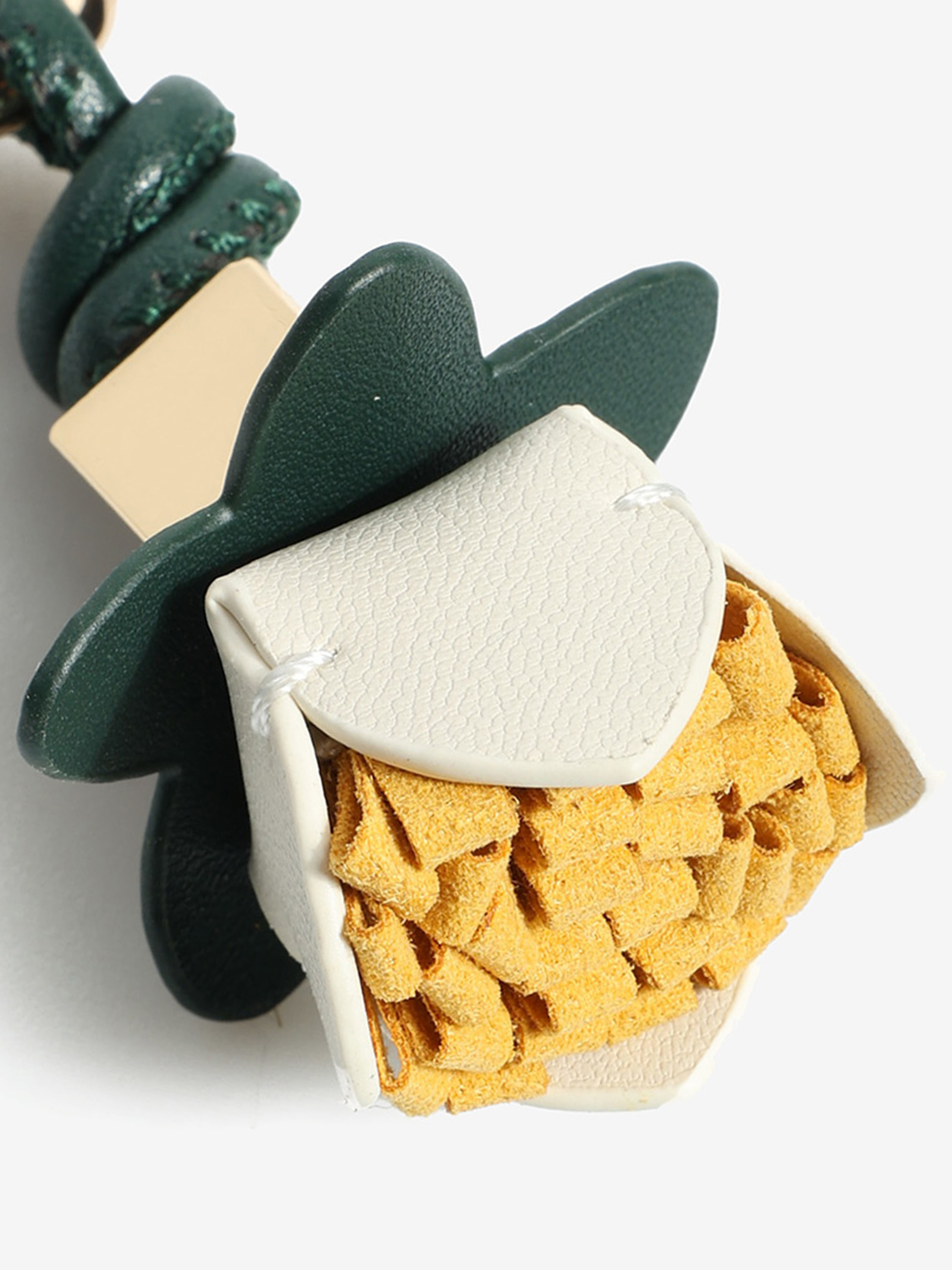 Stylowa przywieszka w formie breloka wykonana ze skóry i tkaniny w kształcie kwiata.To idealny dodatek dla osób ceniących sobie detale i oryginalne akcenty w codziennych stylizacjach.Sprawdzi się jako ozdoba do butów, kluczy, zamka w torebce, plecaka czy nawet telefonu. Niewielki detal, który wyróżni Cię z tłumu!