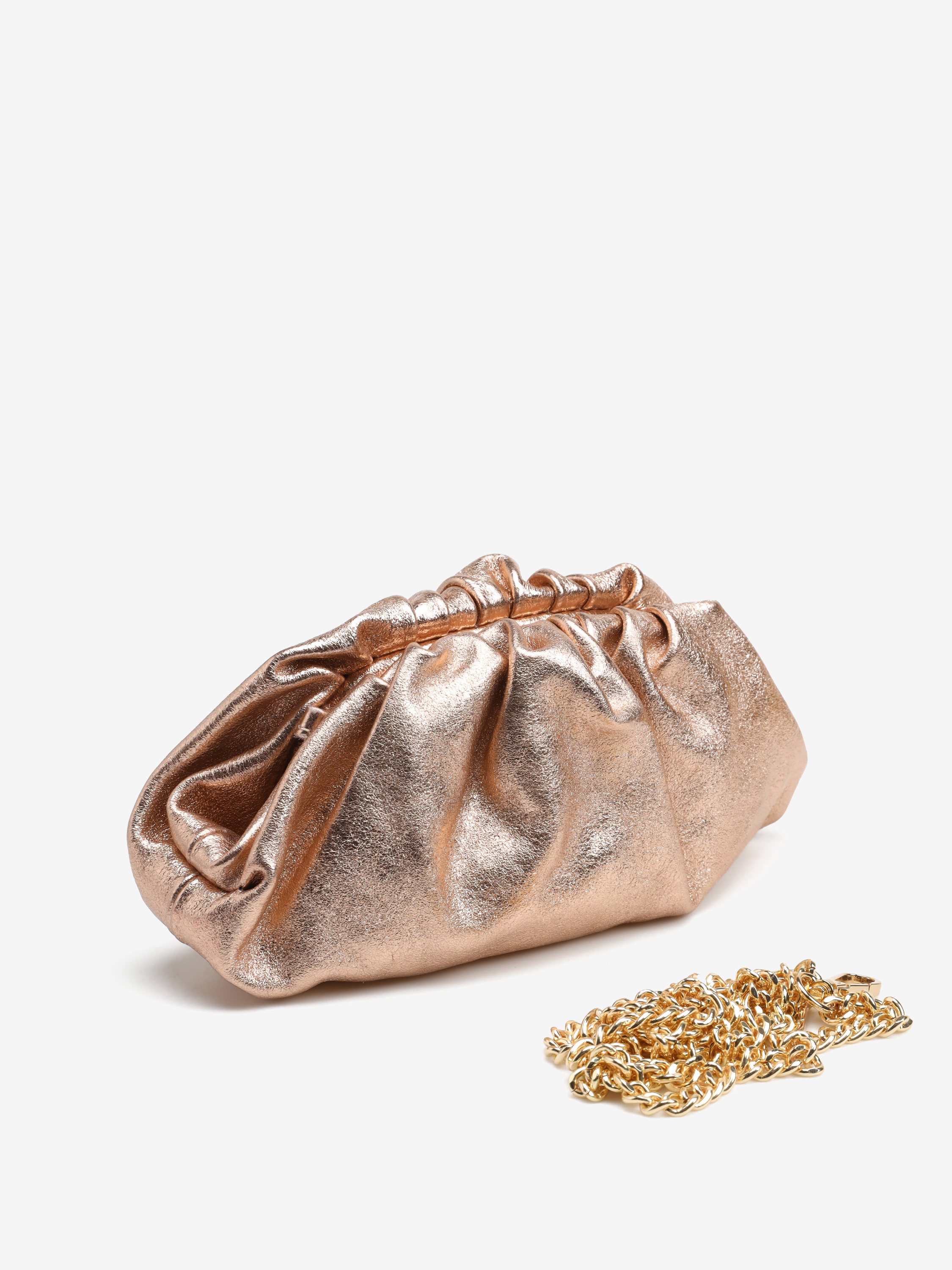 Elegancka, mini torebka z kolekcji HEGO'S Milano w całości wykonana jest z włoskiej naturalnej skóry. Środek torebki to jedna przestrzeń wykończona materiałem. Cienki, złoty pasek pozwala nosić ją na ramieniu. Po odpięciu sprawdzi się jako kopertówka do ręki. Będzie ozdobą wielu stylizacji, nie tylko tych wieczorowych. Dostępna w wielu kolorach.