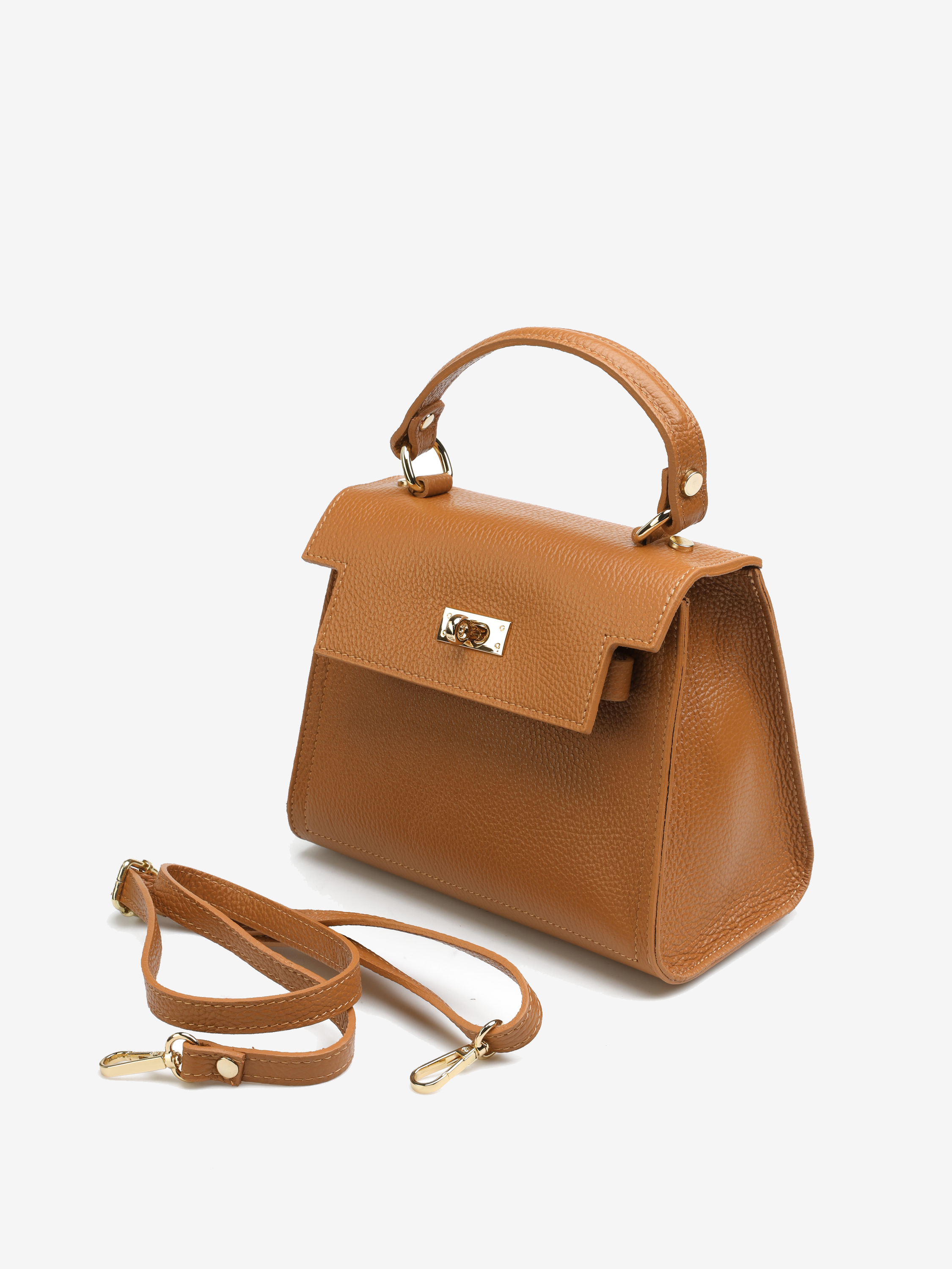 Elegancka torebka damska z kolekcji HEGO'S Milano w całości wykonana jest z włoskiej naturalnej skóry. Wykończona została złotymi detalami .Zapinana jest na zatrzask. Środek torebki to jedna przestrzeń wykończona materiałem. Posiada małą kieszonkę zapinaną na zamek błyskawiczny. Cienki, regulowany pasek na ramię pozwala dopasować ją do swoich potrzeb.Torebkę możemy nosić w dłoni,z paskiem na ramieniu lub jako crossbody bag.