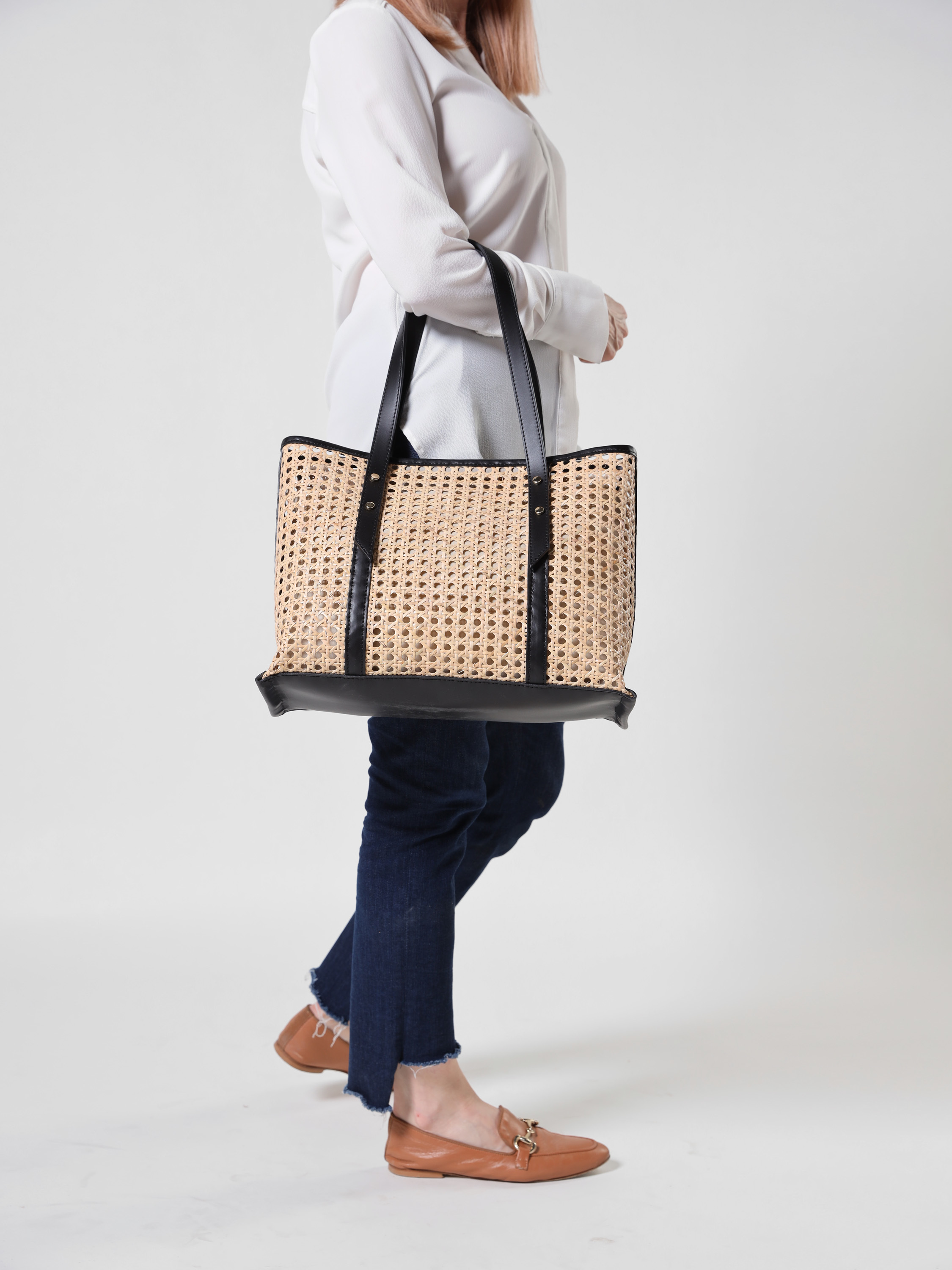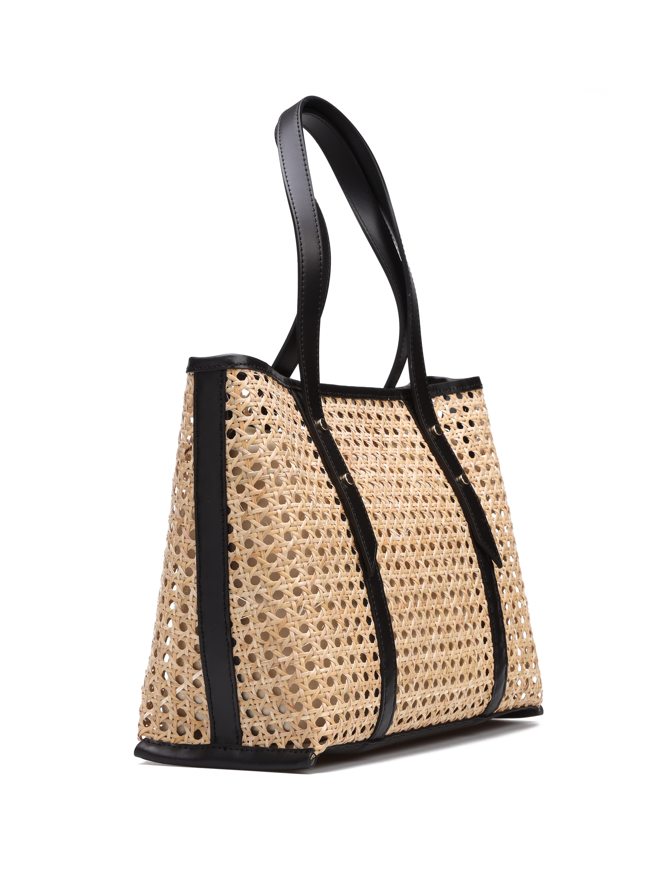Torebka damska typu shopper bag to obowiązkowy element letniej garderoby. Duża, pojemna. Posiada wewnętrzną kosmetyczkę, która pomieści wszystkie rzeczy. Wykonana z naturalnej rafii. Sprawdzi sie nie tylko w mieście, ale również jako torba plażowa.