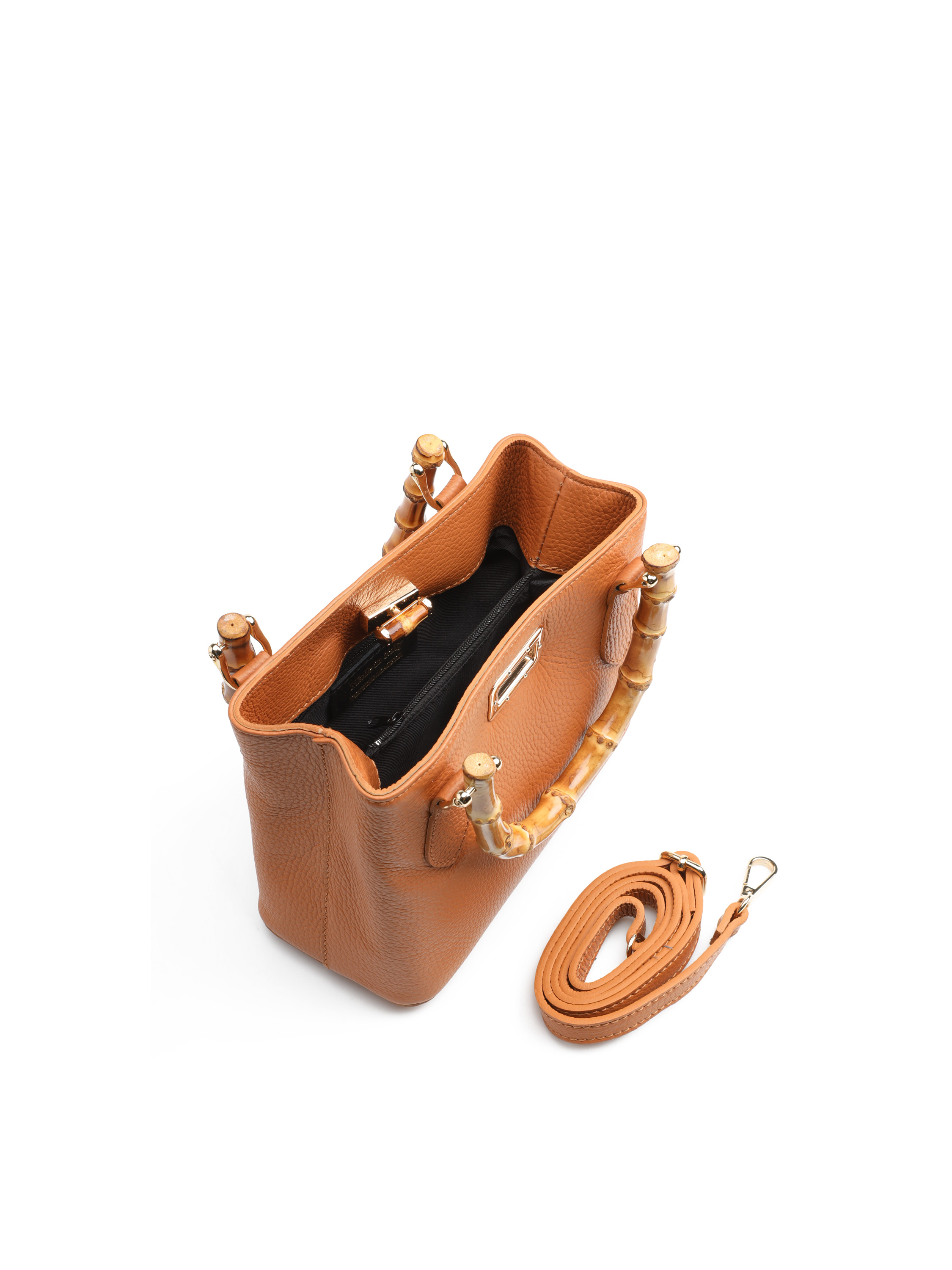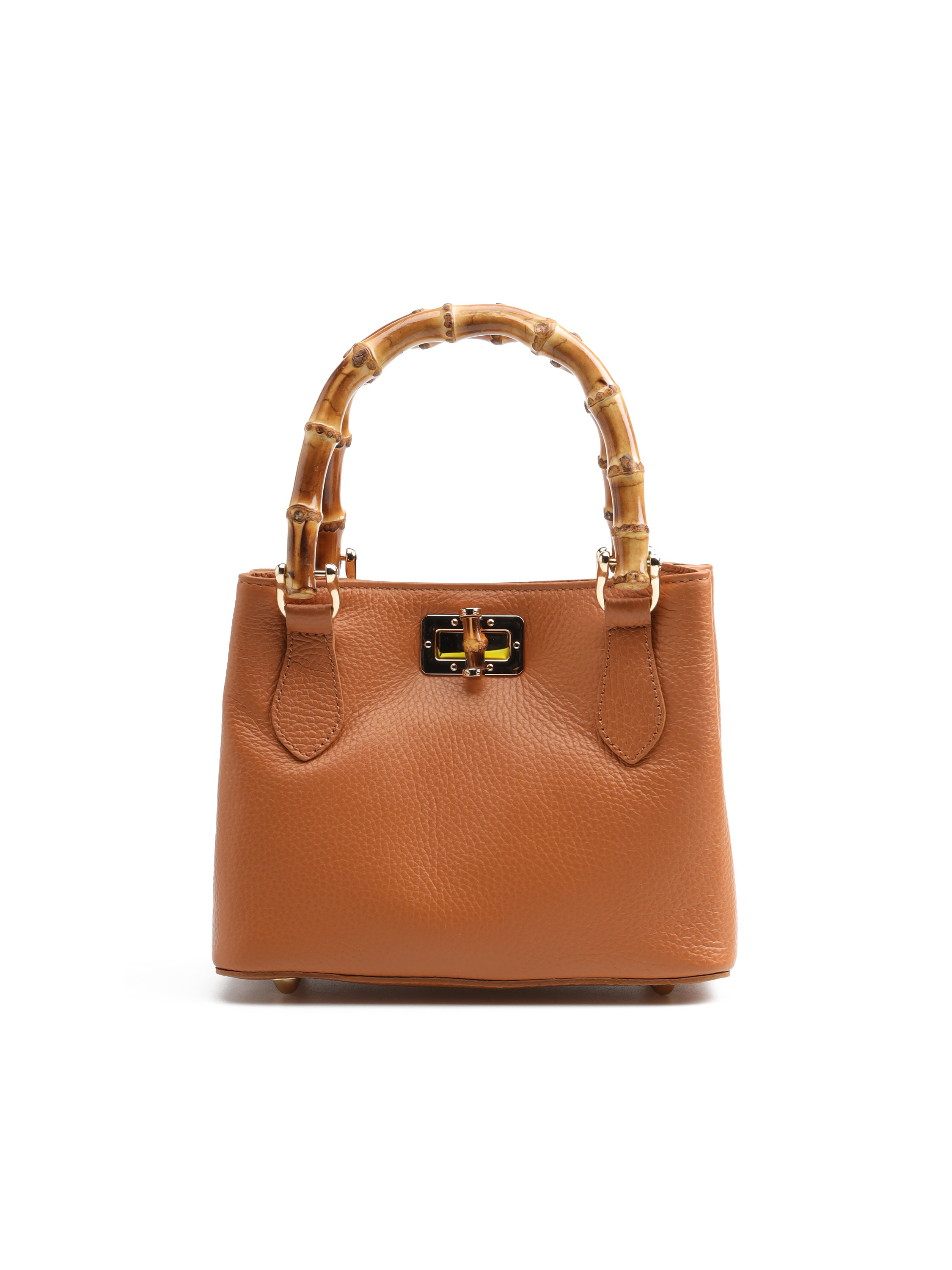 Mini torebka damska z kolekcji HEGO'S Milano w całości wykonana jest z włoskiej naturalnej skóry. Wykończona została złotymi detalami oraz bambusową, stylową rączką. Zapinana jest na zatrzask. Środek torebki to jedna przestrzeń wykończona materiałem. Posiada małą kieszonkę zapinaną na zamek błyskawiczny. Cienki, regulowany pasek na ramię pozwala dopasować ją do swoich potrzeb.