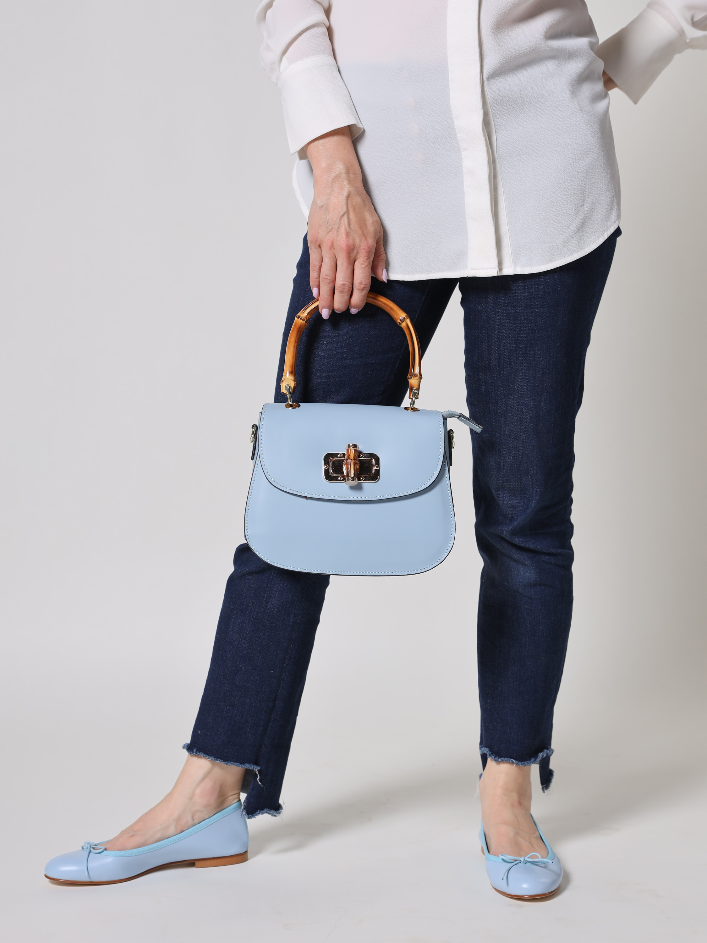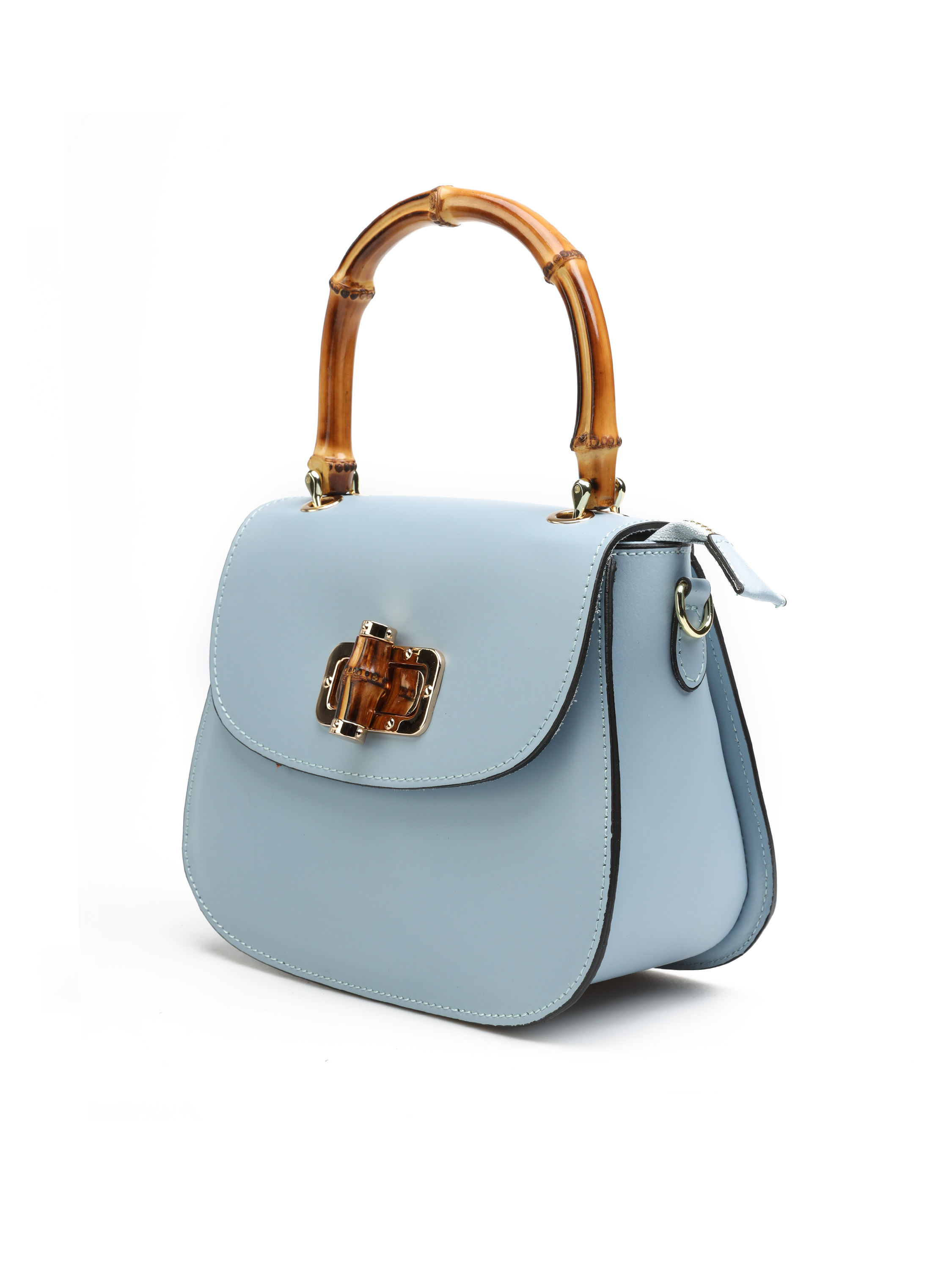 Mini torebka damska z kolekcji HEGO'S Milano w całości wykonana jest z włoskiej naturalnej skóry. Wykończona została złotymi detalami oraz bambusową, stylową rączką. Zapinana jest na zatrzask. Środek torebki to jedna przestrzeń wykończona materiałem. Posiada małą kieszonkę zapinaną na zamek błyskawiczny. Cienki, regulowany pasek na ramię pozwala dopasować ją do swoich potrzeb.