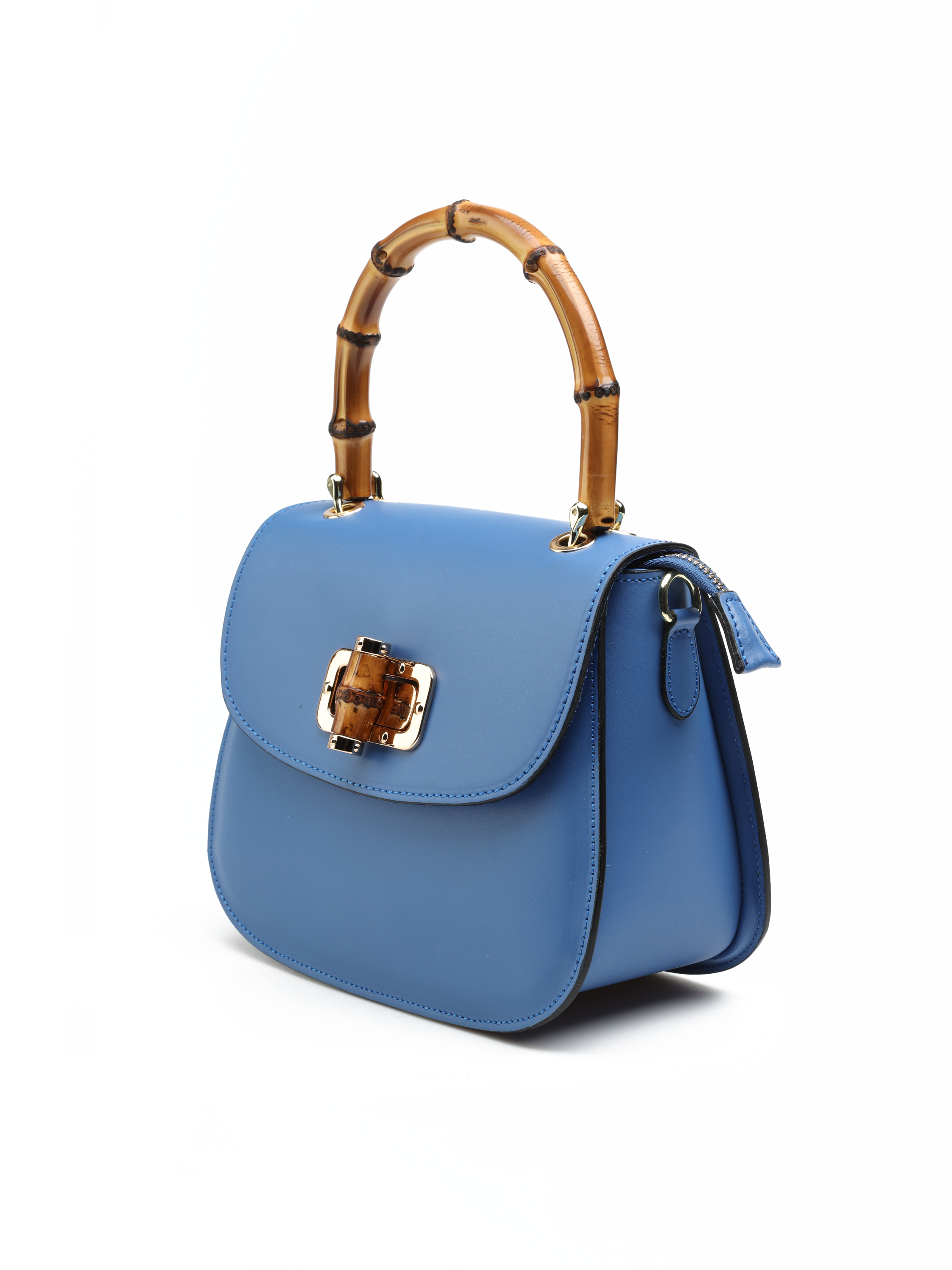 Mini torebka damska z kolekcji HEGO'S Milano w całości wykonana jest z włoskiej naturalnej skóry. Wykończona została złotymi detalami oraz bambusową, stylową rączką. Zapinana jest na zatrzask. Środek torebki to jedna przestrzeń wykończona materiałem. Posiada małą kieszonkę zapinaną na zamek błyskawiczny. Cienki, regulowany pasek na ramię pozwala dopasować ją do swoich potrzeb.