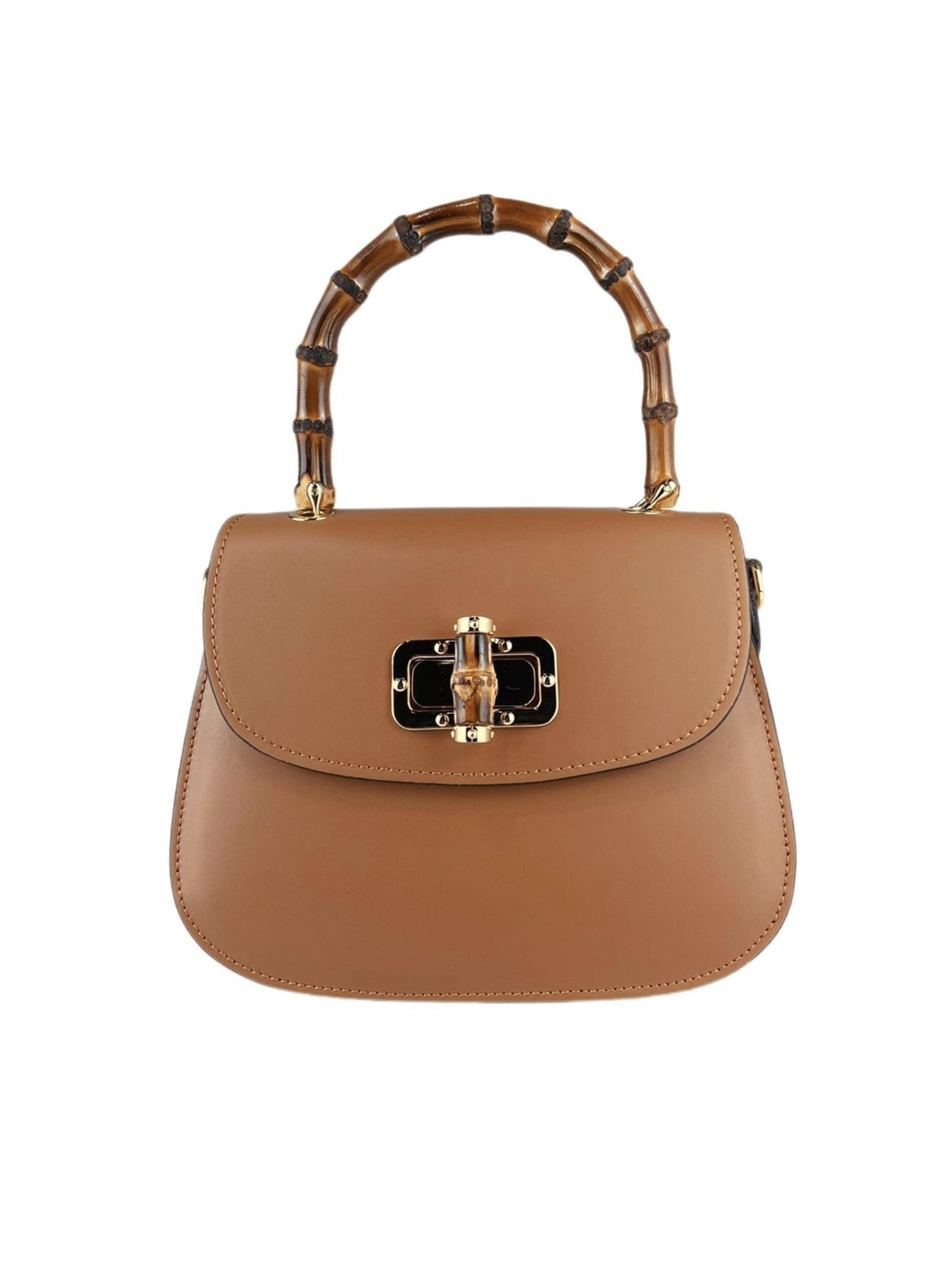 Mini torebka damska z kolekcji HEGO'S Milano w całości wykonana jest z włoskiej naturalnej skóry. Wykończona została złotymi detalami oraz bambusową, stylową rączką. Zapinana jest na zatrzask. Środek torebki to jedna przestrzeń wykończona materiałem. Posiada małą kieszonkę zapinaną na zamek błyskawiczny. Cienki, regulowany pasek na ramię pozwala dopasować ją do swoich potrzeb.