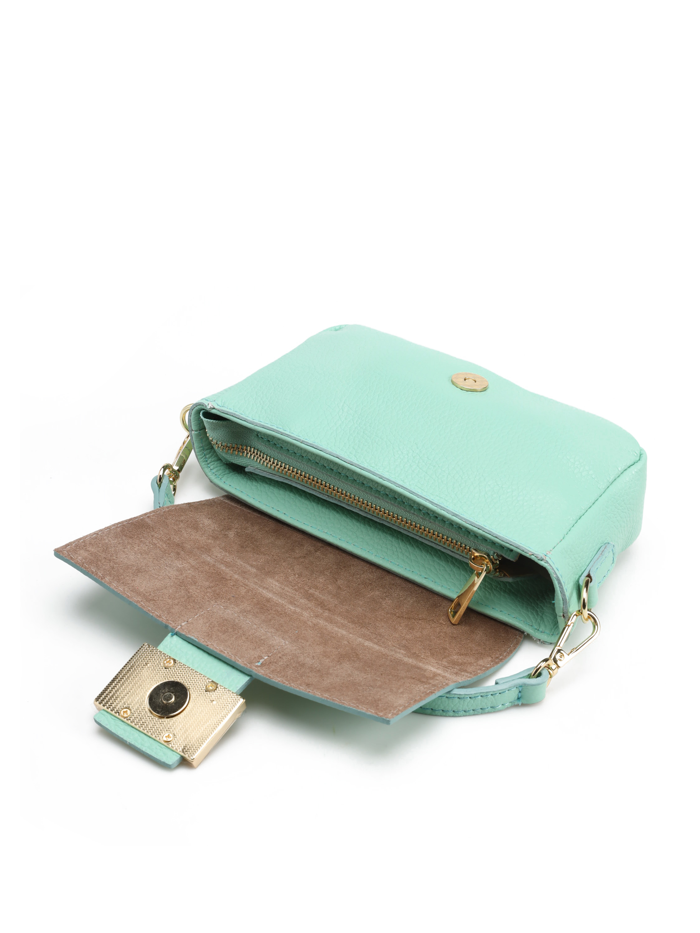 Mini torebka damska z kolekcji HEGO'S Milano w całości wykonana jest z włoskiej naturalnej skóry. Wykończona została złotymi detalami .Zapinana na magnes. Środek torebki posiada zamek błyskawiczny i małe przegrody. Złoty, łańcuszkowy pasek można zamiennie nosić ze skórzanym paskiem w zależności od potrzeb.