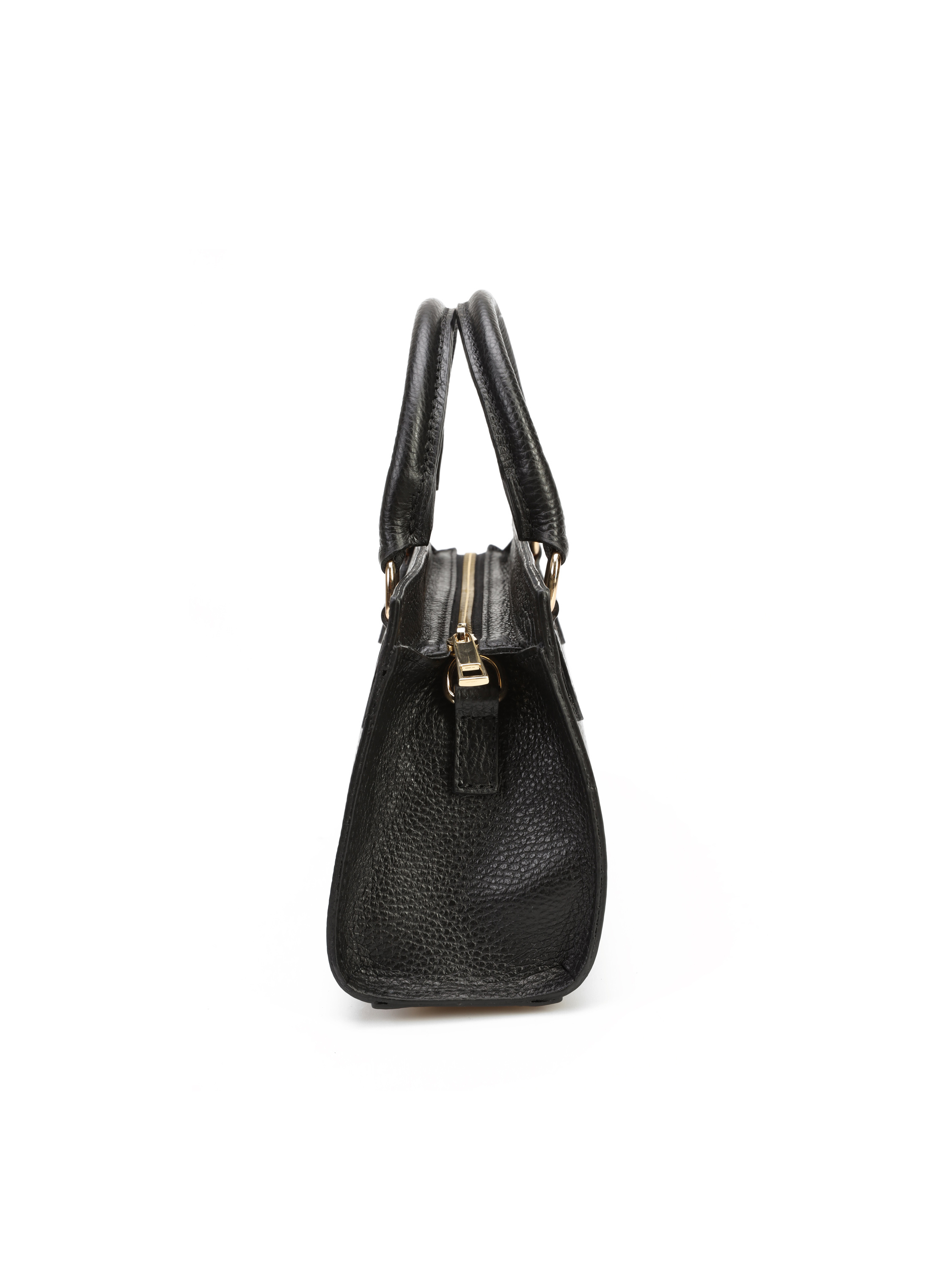 Torebka damska HEGO'S Milano wykonana jest z włoskiej skóry naturalnej. Zapinana jest na zamek błyskawiczny. Wnętrze torebki to jedna przestrzeń podszyta tkaniną. Model wykończony został złotymi elamenatmi. Torebkę można nosić w dłoni lub z paskiem na ramieniu.