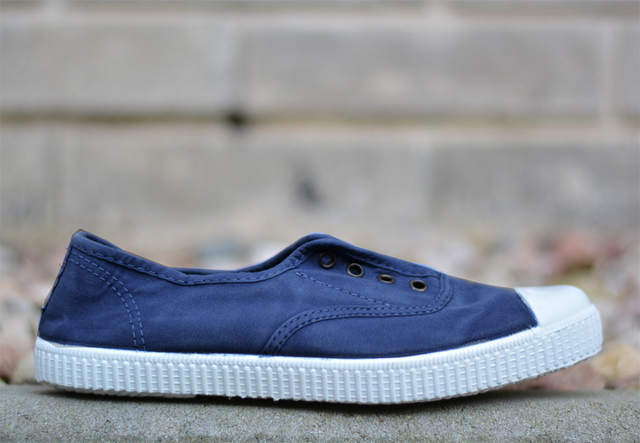 Trampki francuskiej marki Chipie,wykonane z bawełnianego materiałuw kolorze granatowym.