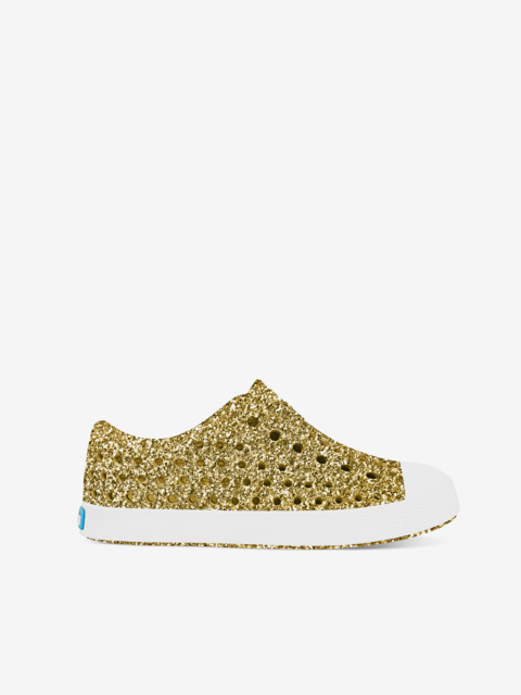 Buciki są zmywalne, czyli odpowiednie dla wszystkich wszędobylskich urwisów! Są wodoodporne, idealnie nadają się do jeziora czy morza, ochronią wrażliwe stopy przed glonami czy koralowcami. Ponadto buty są bezwonne, hipoalergiczne oraz wegańskie, co znaczy, że przy ich produkcji nie używa się żadnych produktów pochodzenia zwierzęcego. Model z glitterem - dla dziewczynek, które lubią się wyróżniać :)
