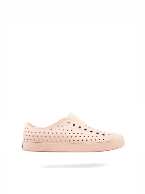 Super lekkie  Native Jefferson Bloom Chameleon Pink/Chameleon Pink/Shell Speckles to odpowiedzialny wybór. Wyjątkowy model stworzony z myślą o zrównoważonym rozwoju, cholewka i podeszwa zostały wykonane przy użyciu technologii Rise by Bloom, z przetworzonej biomasy alg. Podczas produkcji jednej pary butów Bloom do ekosystemu przywracane jest 80L przefiltrowanej wody. W procesie tym oczyszczane jest też 50m3 powietrza. Dzięki technologii formowania wtryskowego, cholewka dopasowuje się do stopy. Materiał ten posiada takie same właściwości jak klasyczna pianka EVA, jest lekki, odporny na wodę, bardzo miękki i wytrzymały. Nie musisz się też martwić o zabrudzenia, szybko usuniesz je gąbeczką z mydłem pod bieżącą wodą.