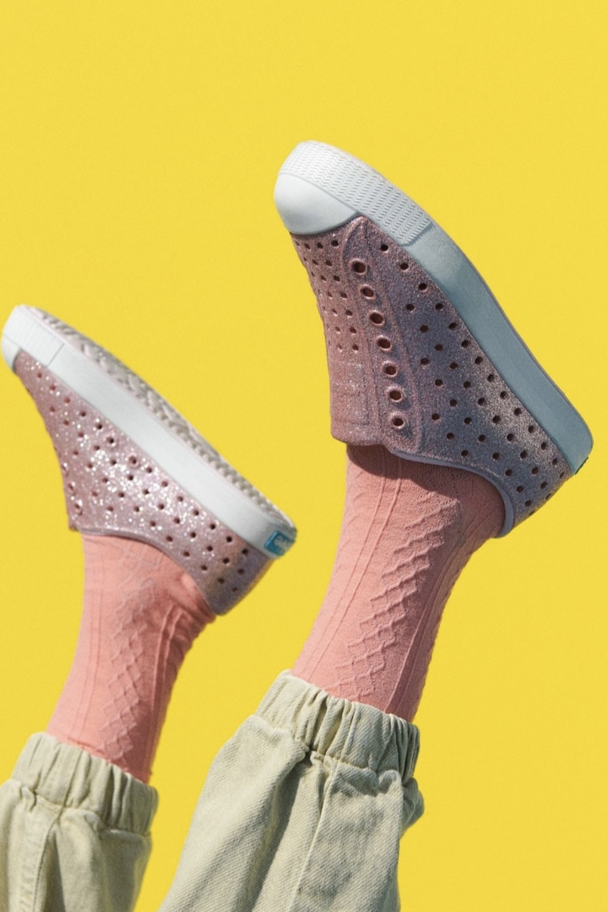 Buciki są zmywalne, czyli odpowiednie dla wszystkich wszędobylskich urwisów! Są wodoodporne, idealnie nadają się do jeziora czy morza, ochronią wrażliwe stopy przed glonami czy koralowcami. Ponadto buty są bezwonne, hipoalergiczne oraz wegańskie, co znaczy, że przy ich produkcji nie używa się żadnych produktów pochodzenia zwierzęcego. Model z glitterem - dla dziewczynek, które lubią się wyróżniać :)