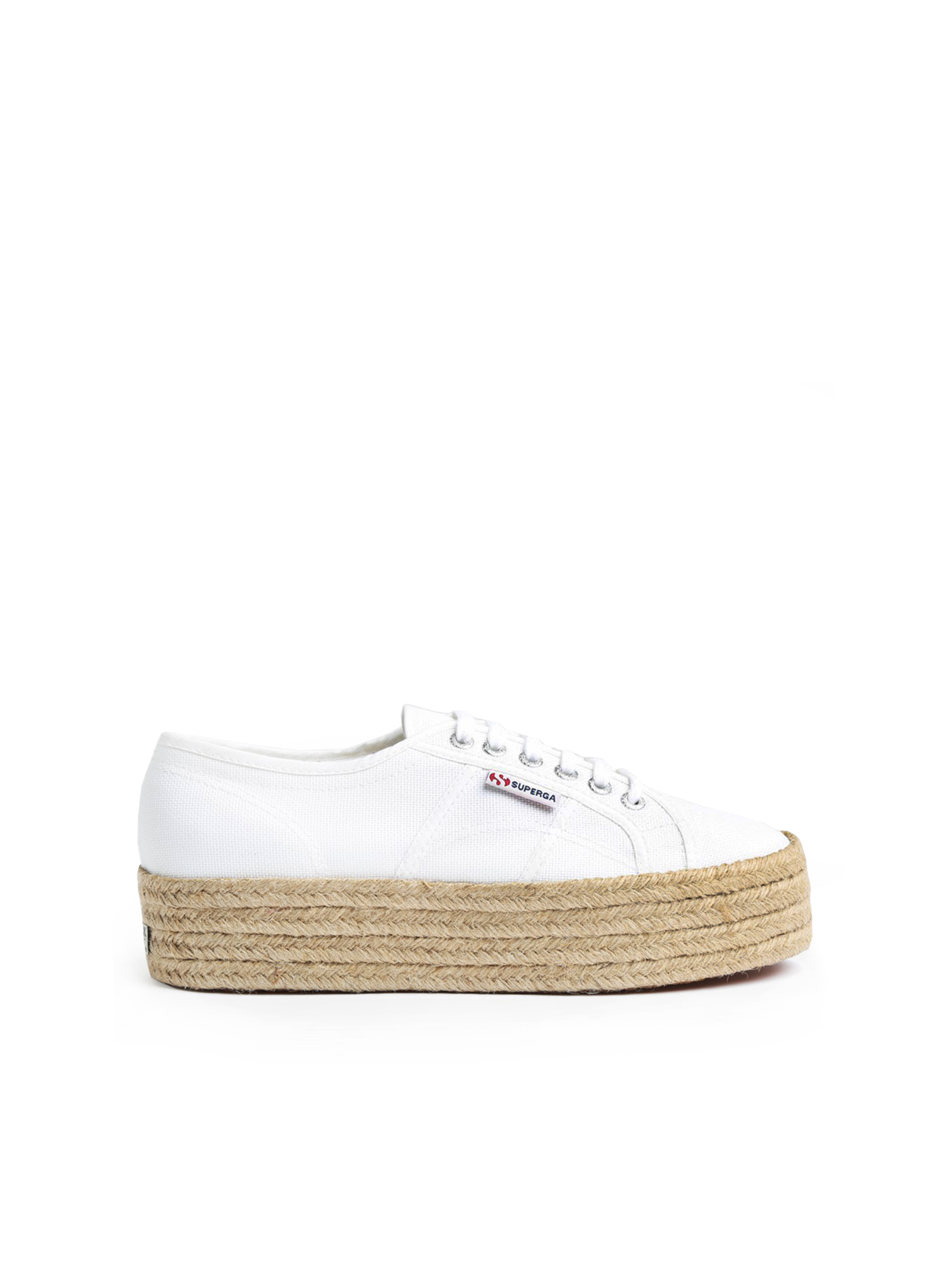 Superga 2730 to najpopularniejszy model espadryli włoskiej marki Superga. Płócienny klasyczny kształt cholewki na platformie. Podeszwa została wykonana z gumy i opleciona słomianą jutą. Modna podwyższona idealnie sprawdzi się do letnich stylizacji.