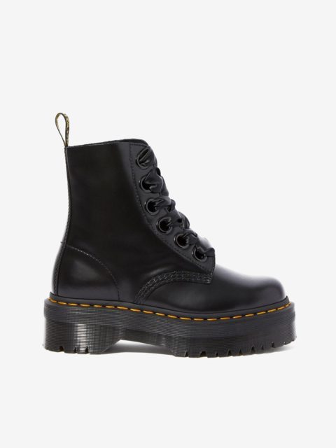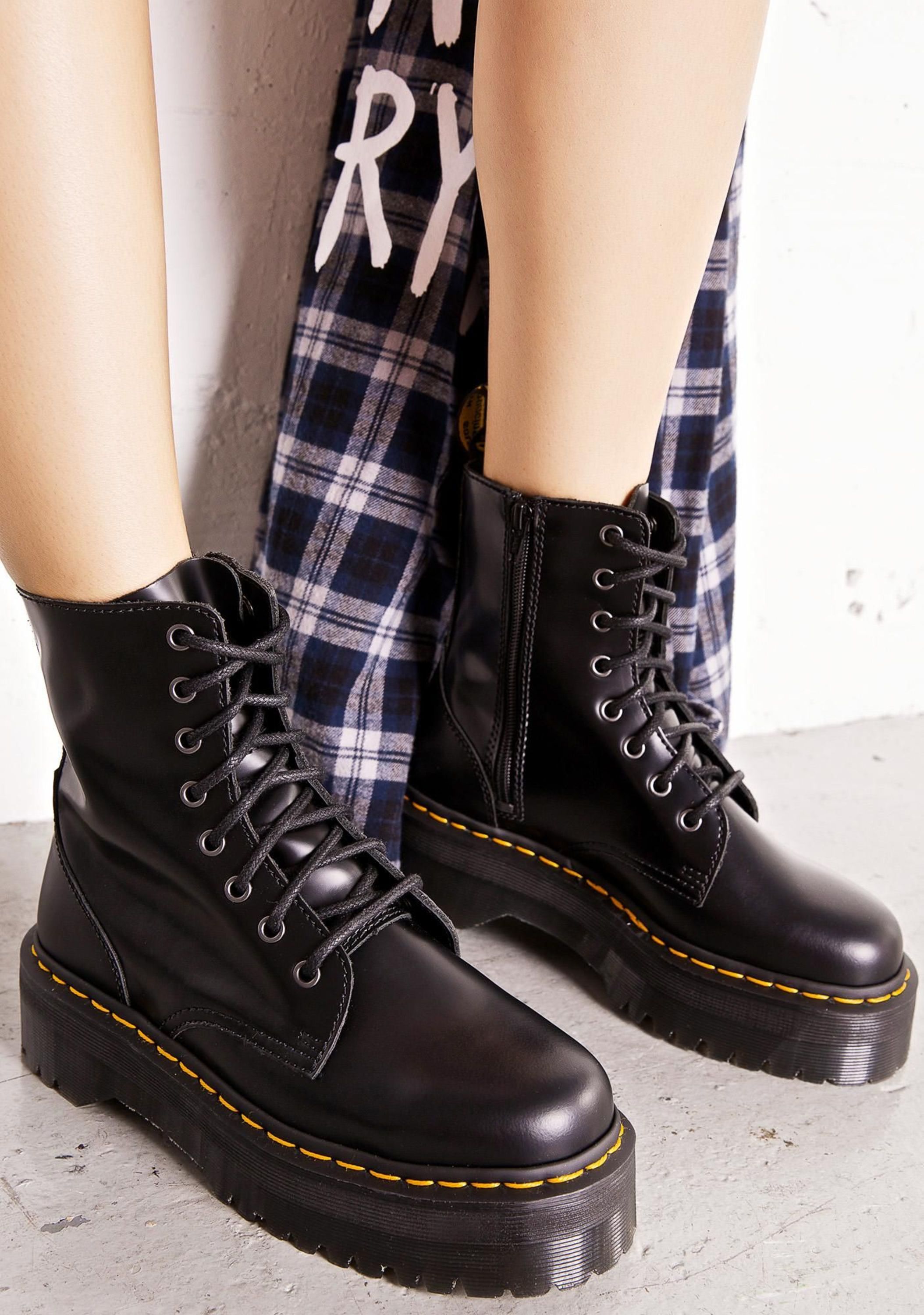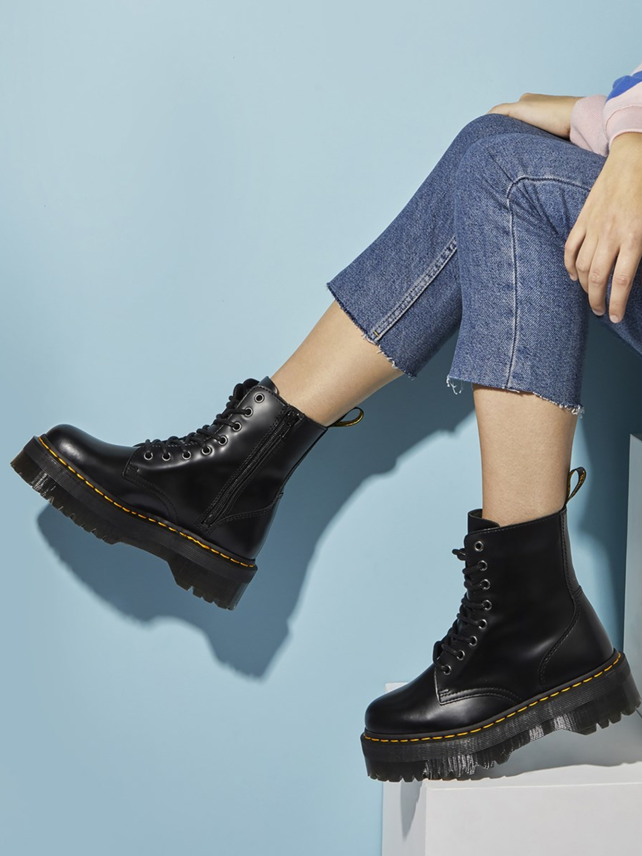 Oryginalne, kultowe, wytrzymałe i z charakterem - to idealne określenie na buty marki Dr. Martens. Ponadczasowe modele, które wpisały się w kanony popkultury, do dziś cieszą się wielką popularnością. Model Jadon w czarnej wersji kolorystycznej z charakterystycznym, żółtym przeszyciem odzwierciedla klasyczny krój, który tym razem wzbogacony został o platformę. Dzięki solidnej cholewce ze skóry oraz odpornej na ścieranie podeszwie z wbudowaną poduszką powietrzną są niezwykle wygodne i posłużą przez lata.